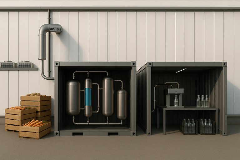 In großen Obst- und Gemüselagern arbeiten Kühlzellen rund um die Uhr. Dabei entsteht ein kontinuierlicher Strom von Kondenswasser – nicht als Abfall, sondern als Nebenprodukt eines Systems, das täglich Tausende Tonnen frischer Ware schützt.